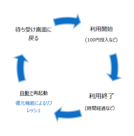 擬似コインの場合も、100円コイン同様のサイクルで動作するため、寡占状態を防ぎ、パソコンを一定時間のみ利用してもらうことが可能です。